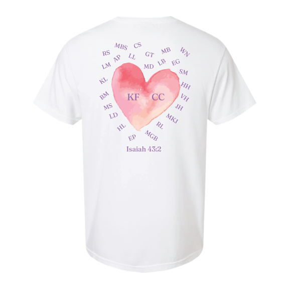 Molly’s sister and best friend, Annie, wanted to design a shirt that captured the spirit and light of all 27 girls. This is her work, with Chloe and Katherine at the center of the heart, just as they remain today with all of us and our girls.